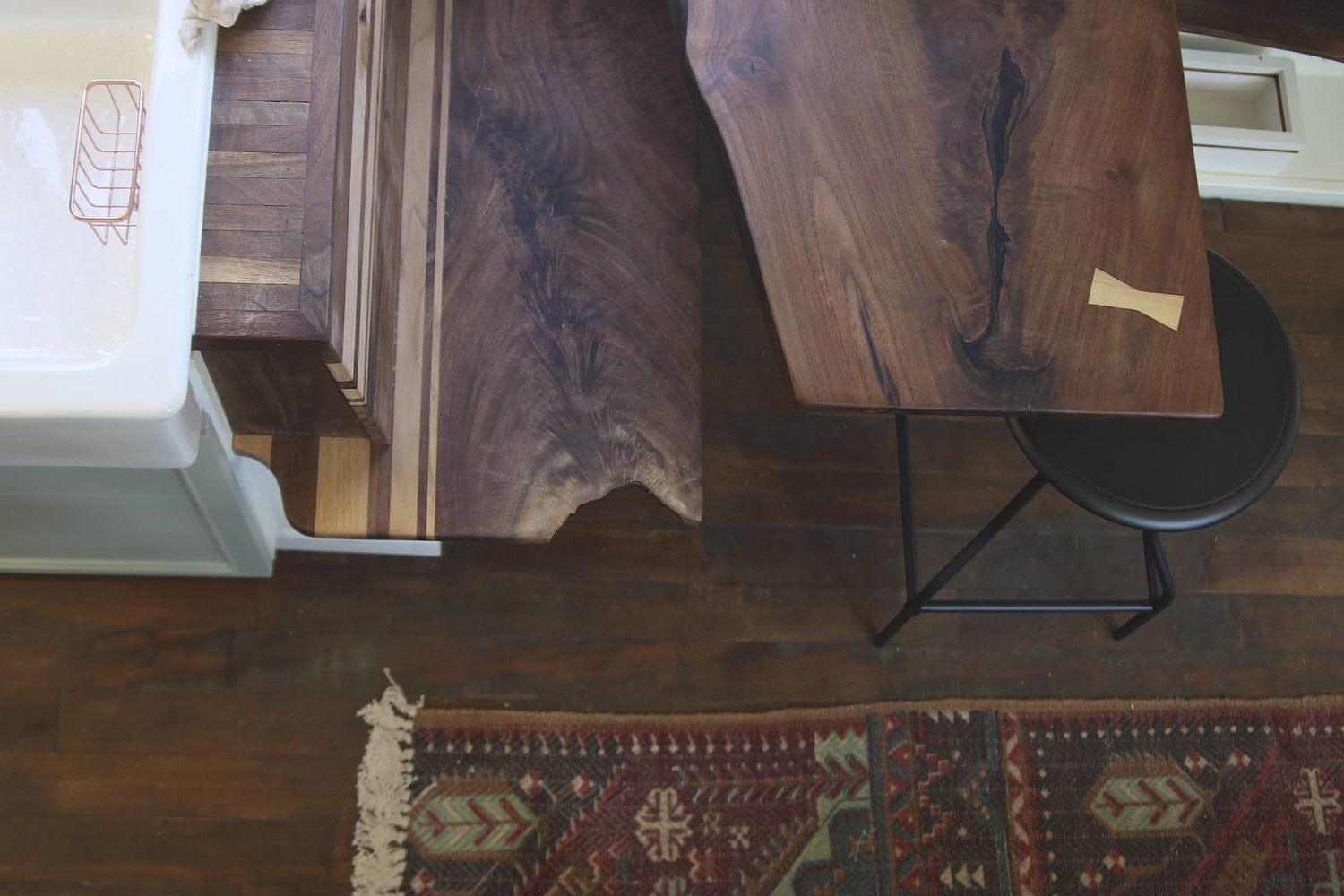 • Beech solid pan kitchen counter and lacquered wooden cabinet